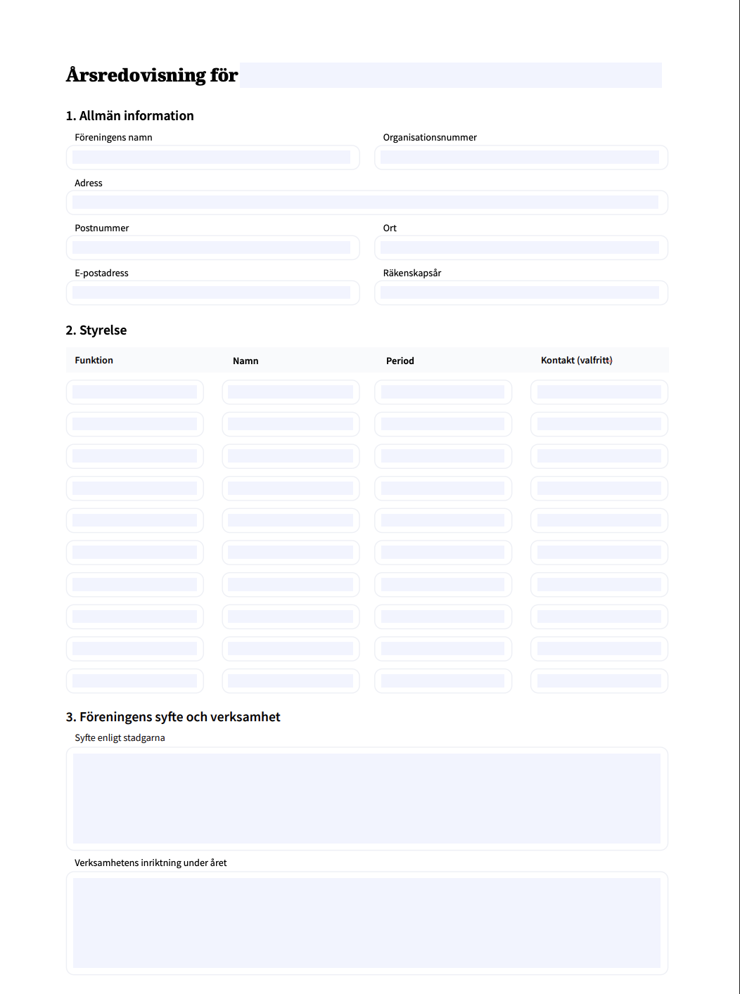 Lär mer om vad en årsredovisning skall innehålla för en förening och ladda ner vår gratis mall för årsredovisning förening.